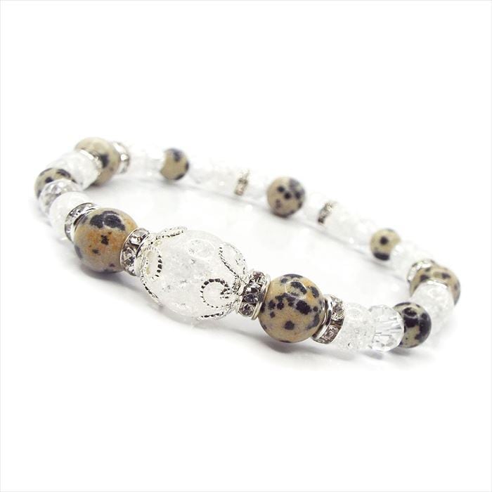 【特別祈願可能】吉日祈願対応のクラック水晶 ダルメシアンジャスパーパワーストーンブレスレット NS_DB0044_352